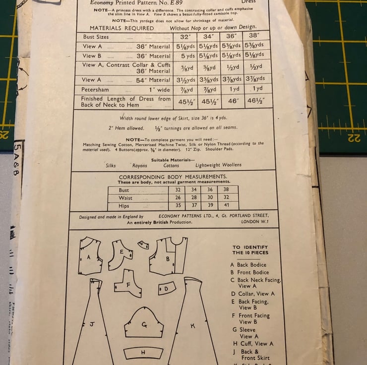 Economy Design No: E89 Bust 32 Princess Dress Sewing Pattern Used Complete 1950s