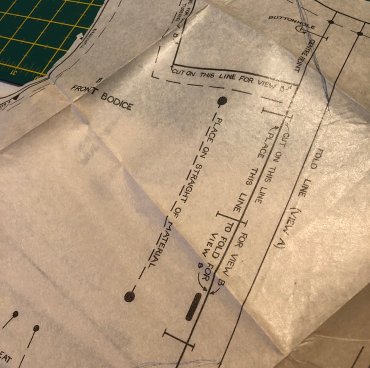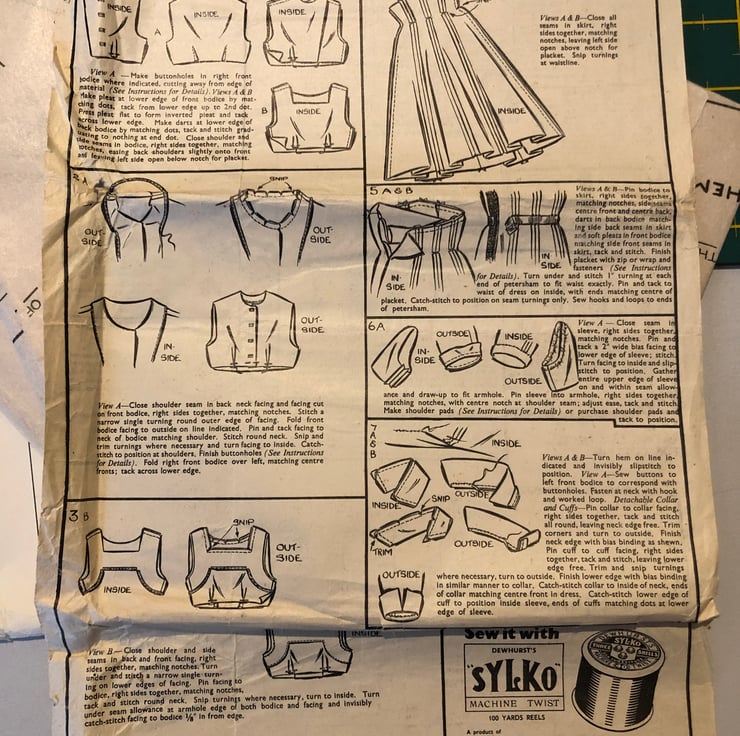 This complete 1950s vintage sewing pattern has been part cut and has some alternative, nicely drawn in lines for the front bodice piece. However it doesn't look used, has been folded nicely and the paper is good quality.