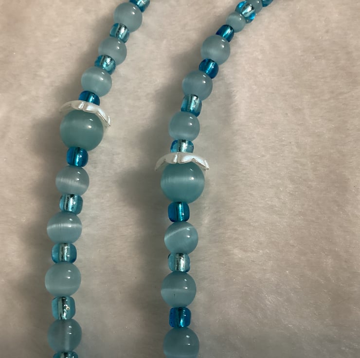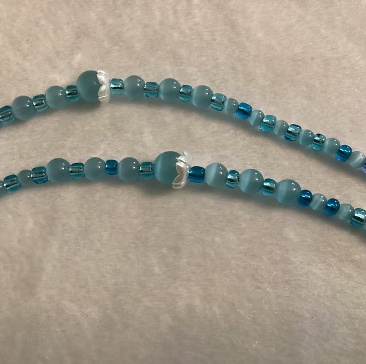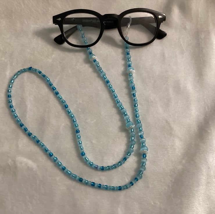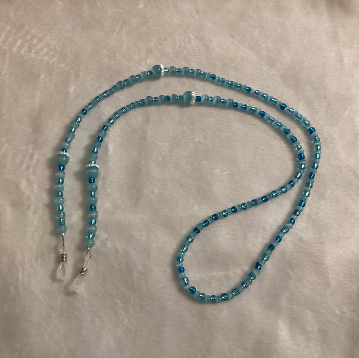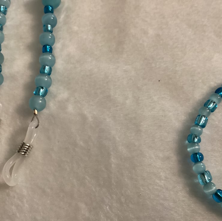 Stunning, easy to use and more important very useful . If you’re like me constantly losing your reading glasses this lanyard is perfect for you! I’ve made several for my self and using it all the time! Use it for sun glasses or reading glasses. I always used Beadalon wire . Strand is the most flexible, the most durable. I’ve used Natural Moon Stone Beads in Blue Cat Eye Beads , Glass Czech Beads and 20 mm Rubber Connectors . This chain allows glasses to be comfortably hung on your chest. Please note: Colours may vary due to different viewing platforms and devices. Glasses not included