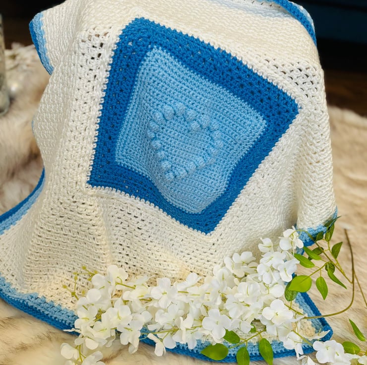 Creating this baby blanket was a heartfelt journey. It’s soft and cosy, a unique piece made with love for a baby boy.