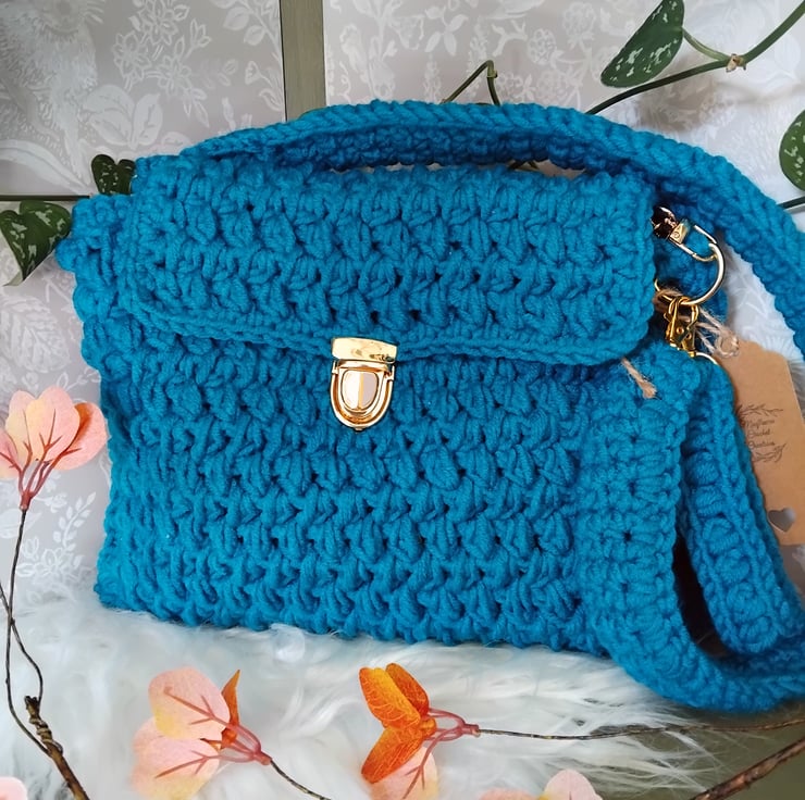 Treat yourself or someone special with this beautiful blue crochet satchel shoulder bag—a true eye catcher that’s as unique as the person who carries it.