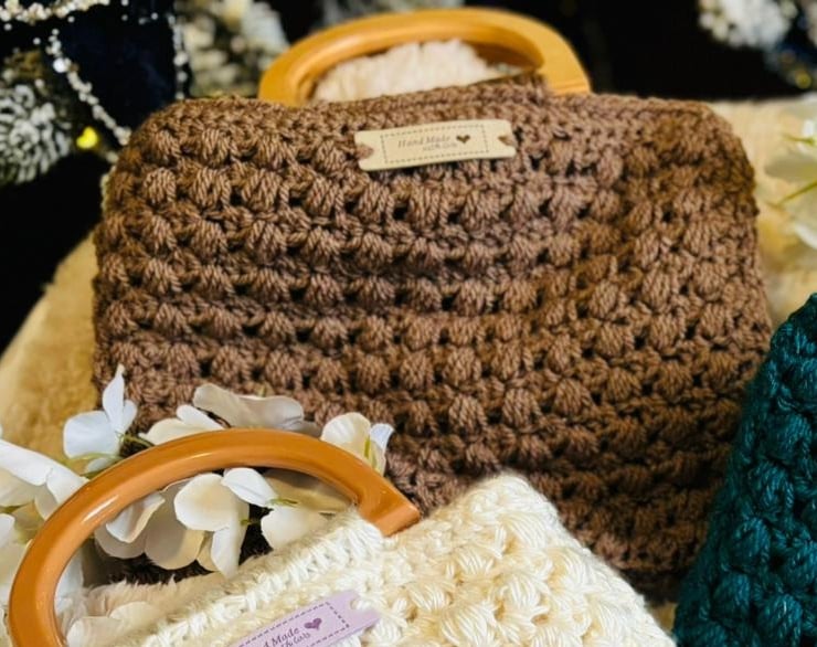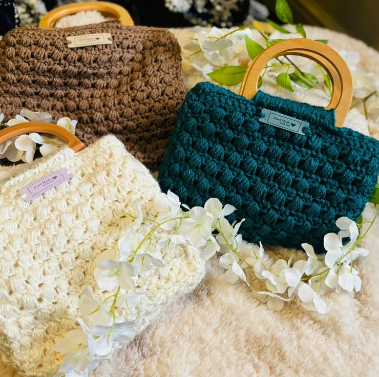 Crochet Handbag Wooden Top Handle