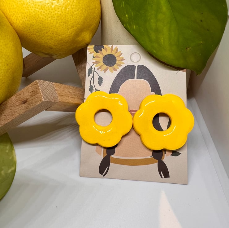 Bring sunshine to your style with these handmade yellow flower earrings, crafted from polymer clay. They’re bold yet comfortable, making them ideal for everyday wear or adding a pop of sunshine to special occasions.