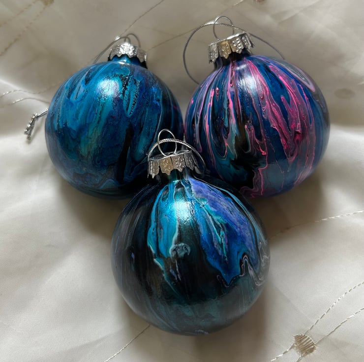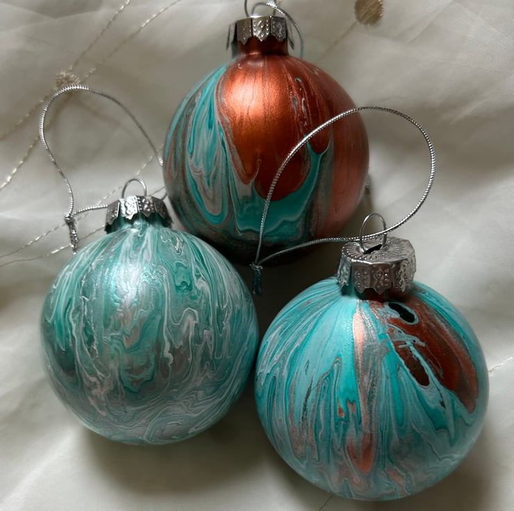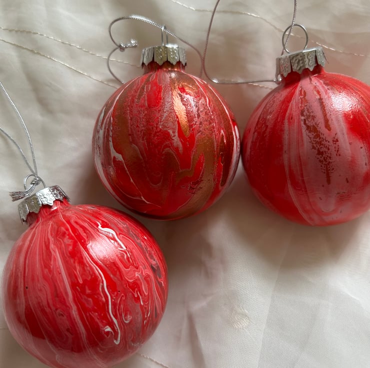 Hand painted Christmas bauble. Approx 4 cm in height plus silver cord to hang from your Christmas tree to get your room in the festive mood.