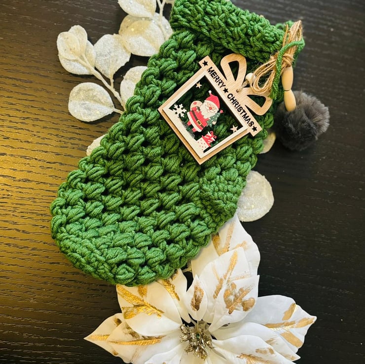 Measuring 15 cm x 32 cm, this unique stocking is the perfect way to showcase your holiday spirit. Handcrafted with love, it adds a special touch to your festive décor.