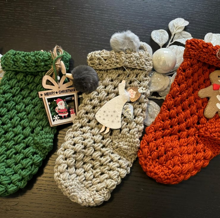 Transform your fireplace with a beautiful crochet Christmas stocking in the "Angel" style!