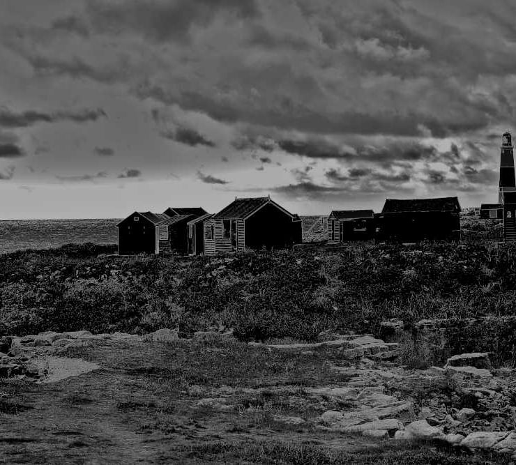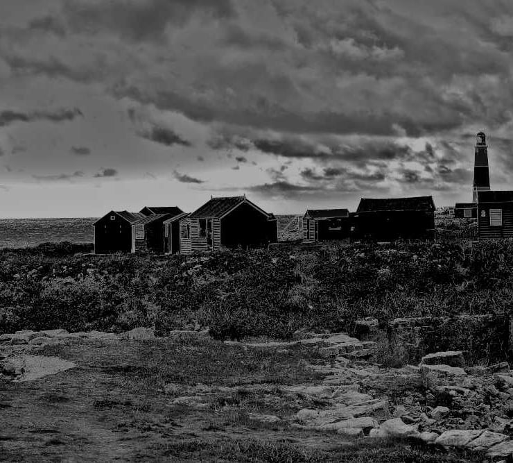 A black and white print of Portland Bill looking back towards the huts and lighthouse across the rugged ground. The black and white gives the area a feeling of a lonely and desolate landscape. Please note, to create this effect, I have made use of a lot of dark, black and grey tones - these absorb light which means that the picture would appear darker in a dark setting than in brighter conditions. For me, this gives the photo a real atmospheric appearance.
