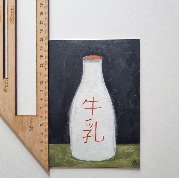 Milk Bottle Art - Original Painting (Unframed) - Kitchen Decor - A6