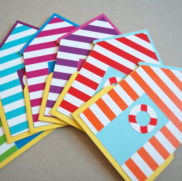 This card in the shape of a beach hut is great for anybody who just loves the summer. The sand, the sea and the sun might not always be on your doorstep but this card can be anywhere.