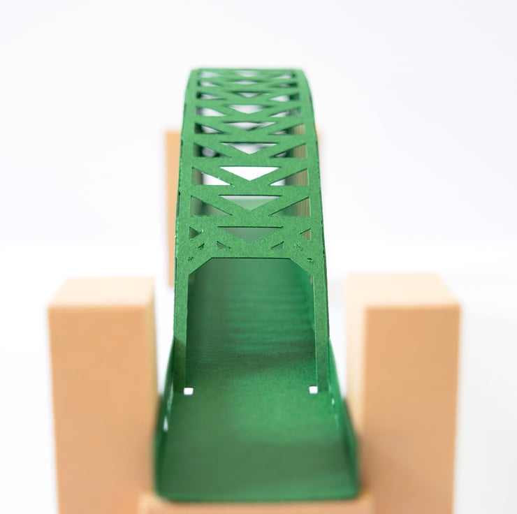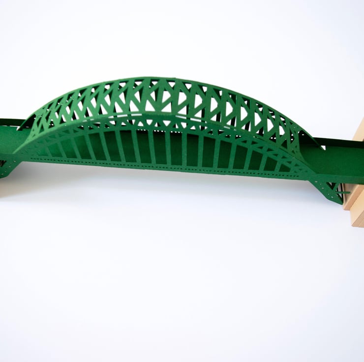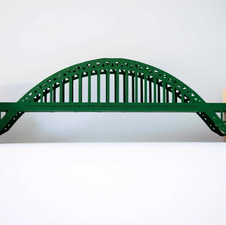 This paper model of the Tyne Bridge is 394 millimetres long and is constructed from 6 pieces of card and a little glue.