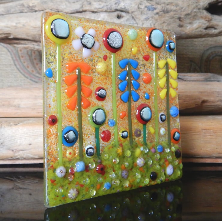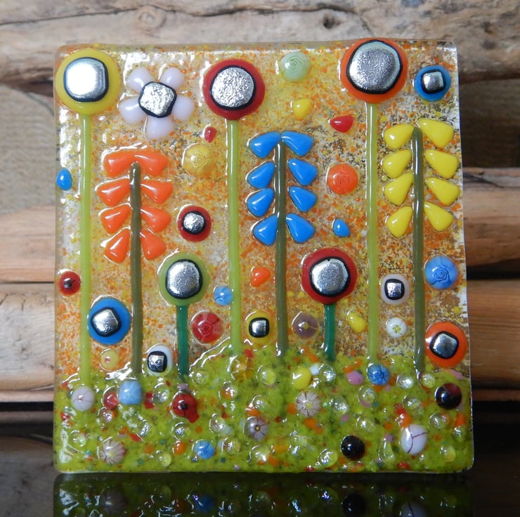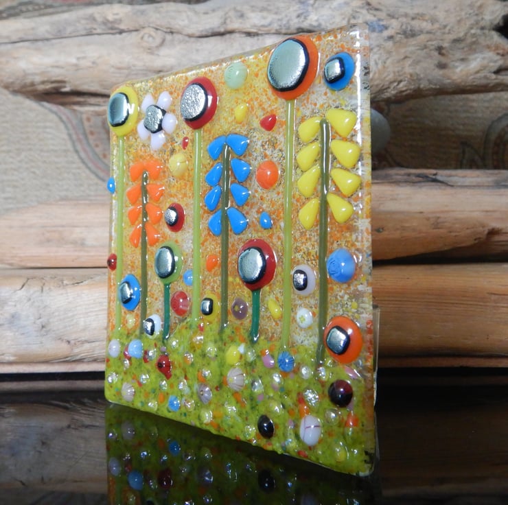 Handmade fused glass 'Meadow' T-light holder.