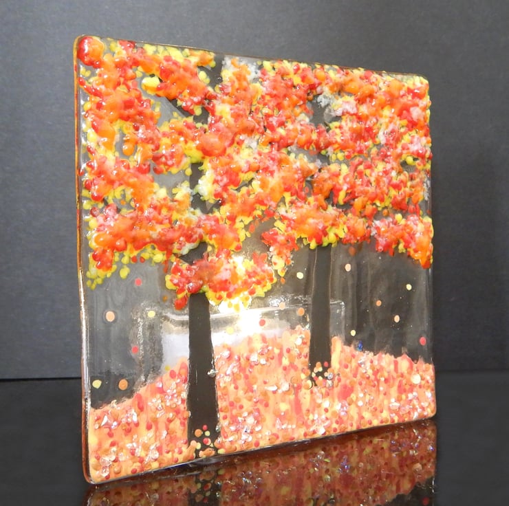 To add a bit of sparkle transparent dichroic frit glass has been sprinkled on the foreground.