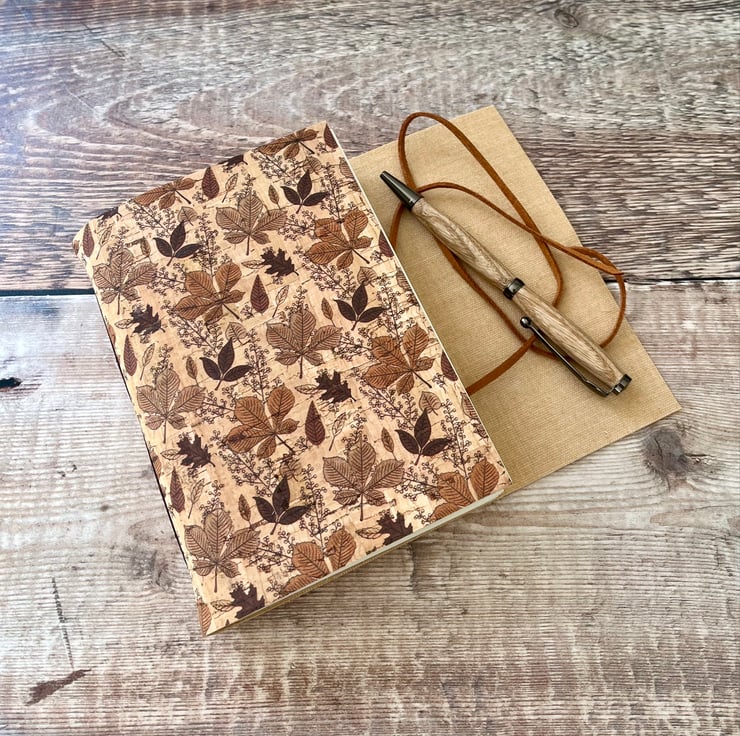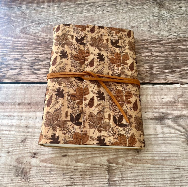 This A6 journal notebook is handcrafted with sustainable cork with a beautiful autumn leaves pattern.