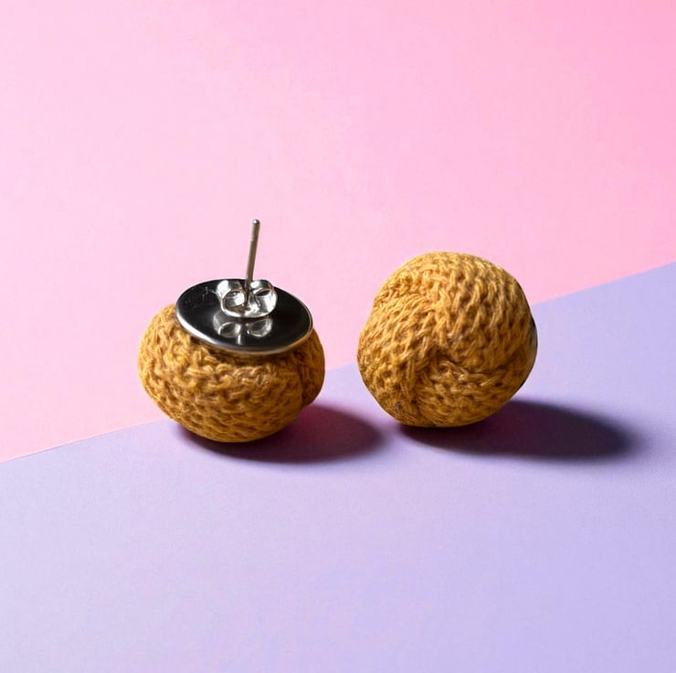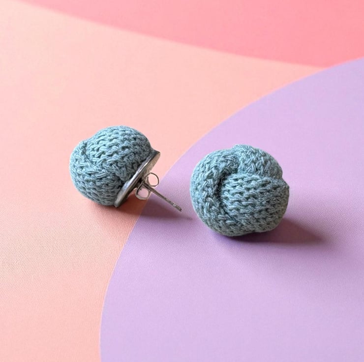 These earrings were born from a simple idea: turning the leftover cord from my larger macrame jewellery pieces into something special. I wanted to create a design that celebrates bold shapes and colour while also being lightweight and wearable. The chunky knot symbolises strength and connection, making them a meaningful piece as well as a playful accessory.