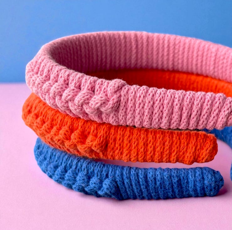 These headbands were inspired by my love of bold, joyful colours. I wanted to create a hair accessory that feels fun but also wearable through the colder months