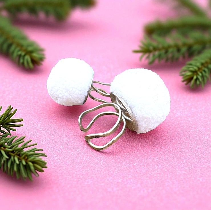 Add a touch of snowy sparkle to your festive style with this playful handmade snowball ring. Featuring a soft, fluffy white pom pom set on an adjustable stainless steel band, it’s the perfect mix of novelty fun and wearable Christmas cheer.