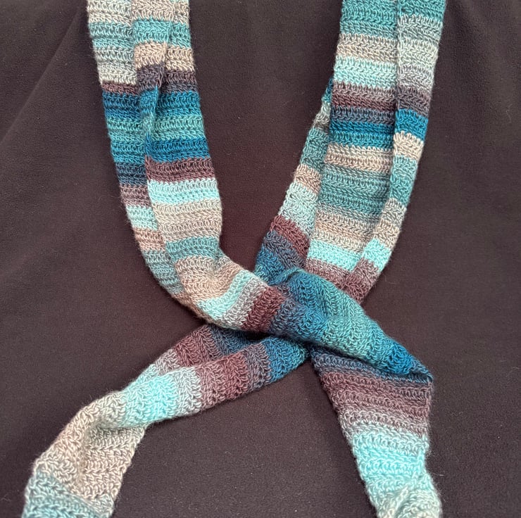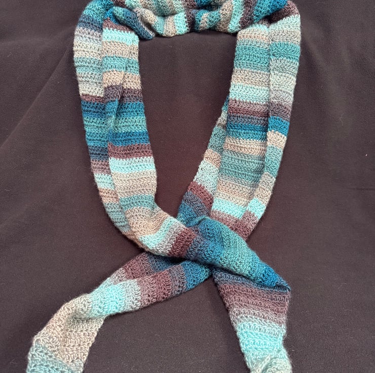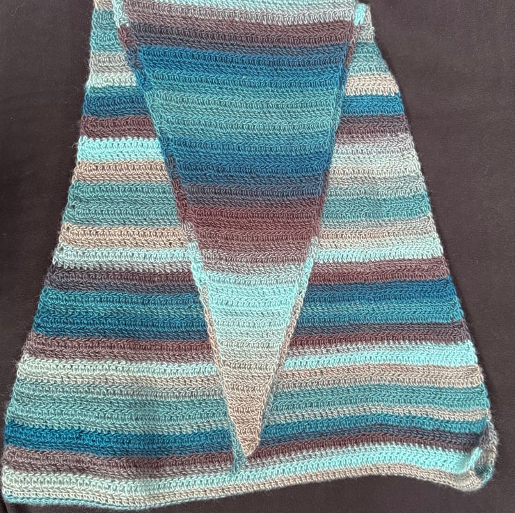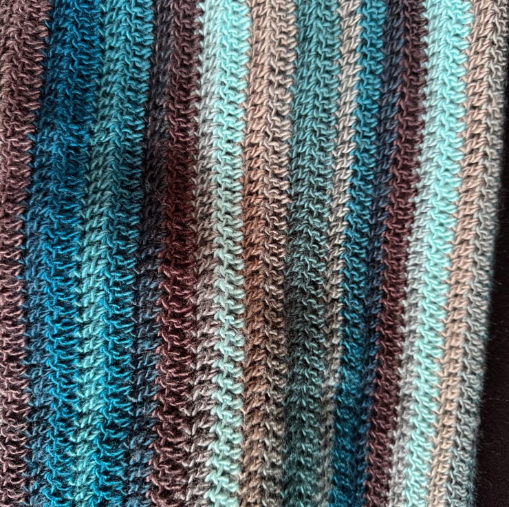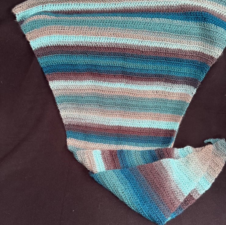 I fell in love with the colour & feel of this yarn. It makes into a beautiful shawl. Lightweight but warm.
