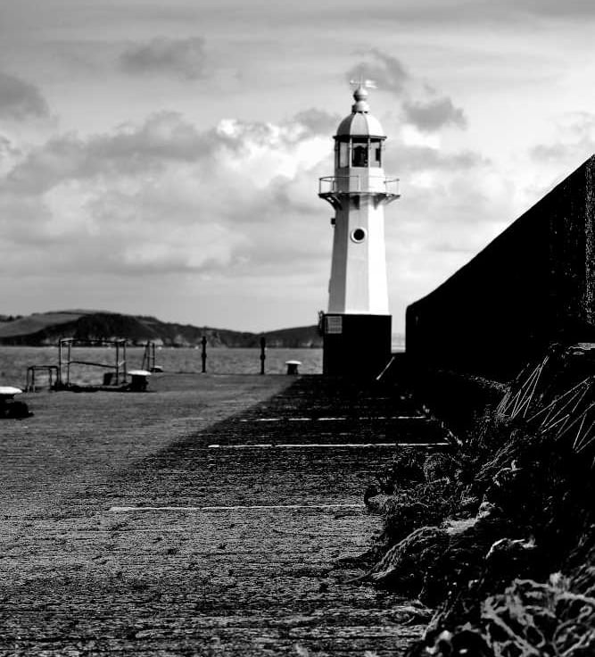 A photographic print of Mevagissey Lighthouse. Choose between Black and White or Colour