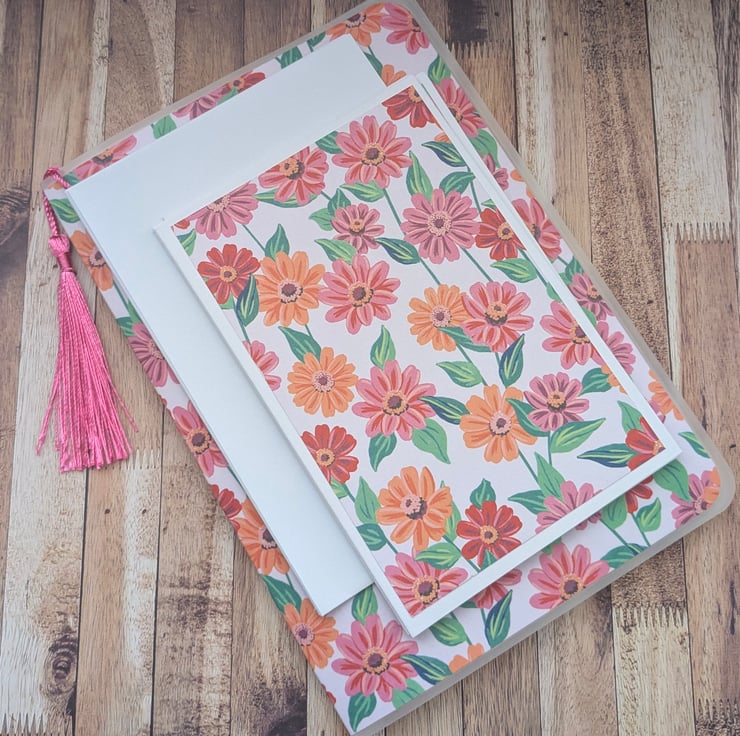 Stay stylish and organised with this beautiful floral stationery set featuring a matching folder with tassel detail and coordinating note cards.