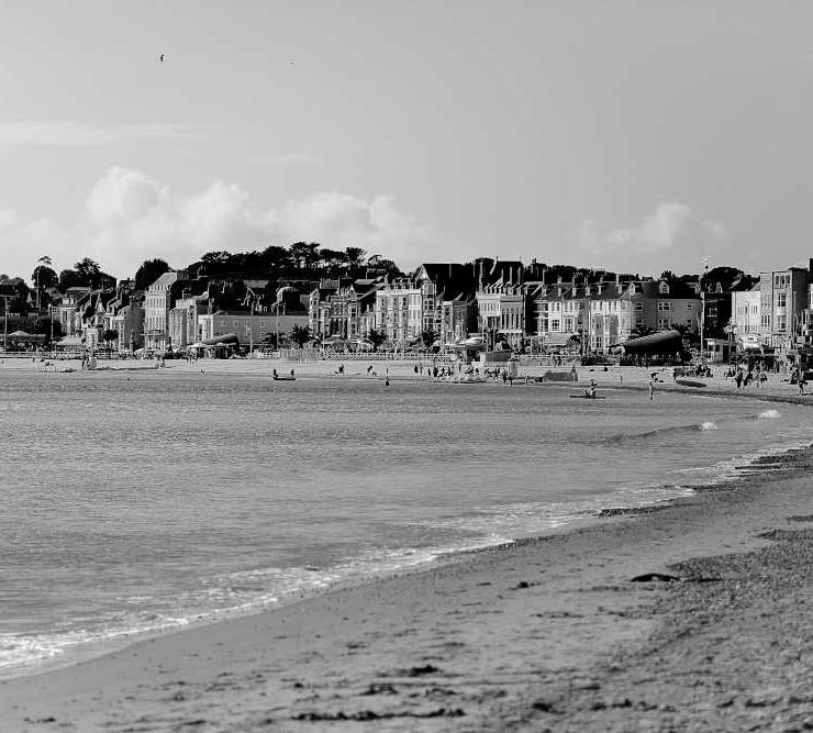 A photographic print looking across the beach and seafront at Weymouth, Dorset. Available in Black and White or Colour and as sizes 7x5 (£4.00) or 12x8 (£10.00). First 2 pictures show the picture cropped to 7x5 size. Simply select the size and colour options from the options.