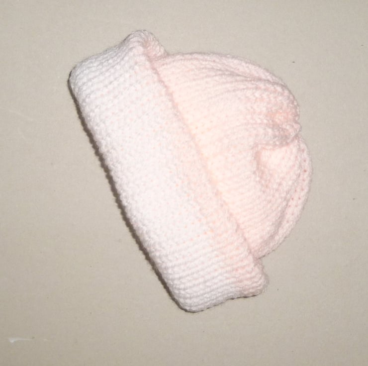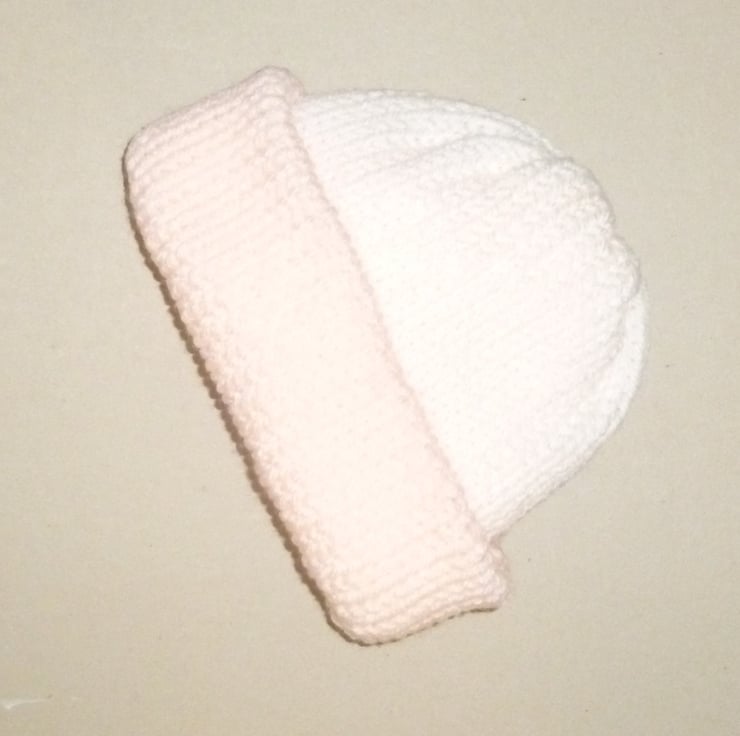 this pretty baby hat has been knitted in James Brett soft Aran acrylic yarn.