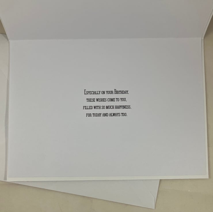 The card measures approximately 12.5cm x 17.5cm (5 inches x 7 inches) and comes with a white envelope in a sealed wrapper.