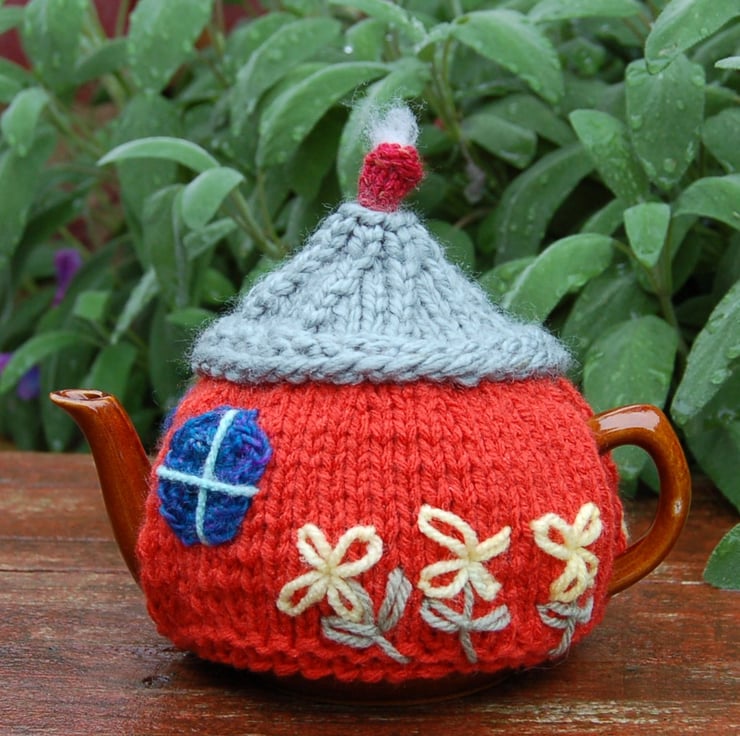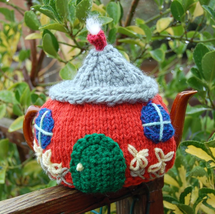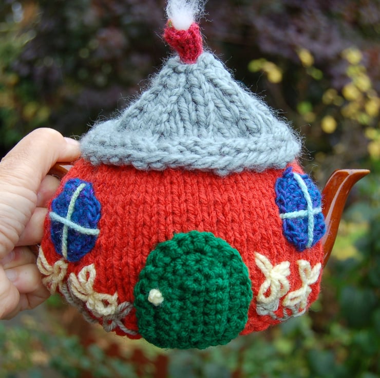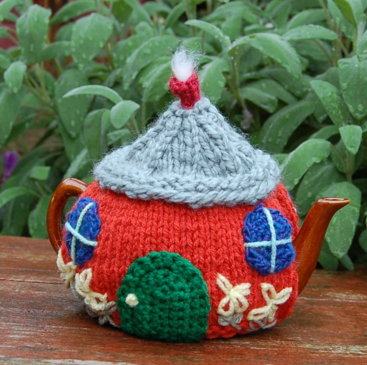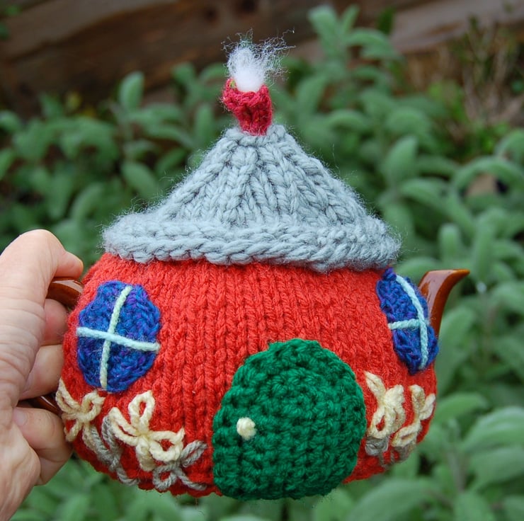 I've been knitting and crocheting tea cosies for many years. This is one of my favourites, there are so many ways to decorate a country cottage.