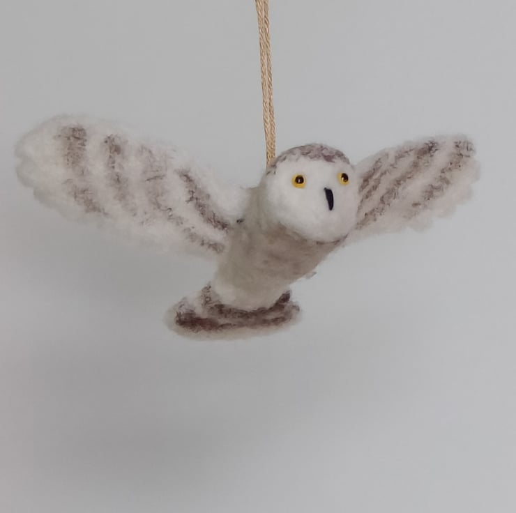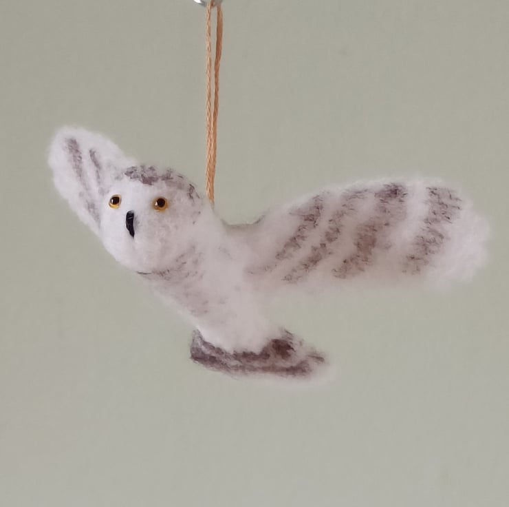 The tawny and barn owl decorations have been carefully felted using a blend of coloured felting