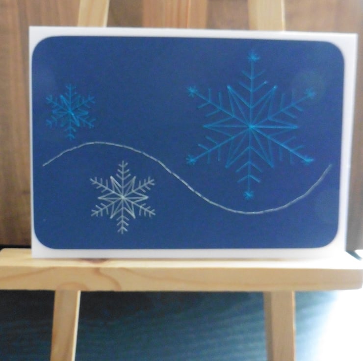 Snowflakes on blue card – all silver, all blue, mix of silver and blue 1 of each
