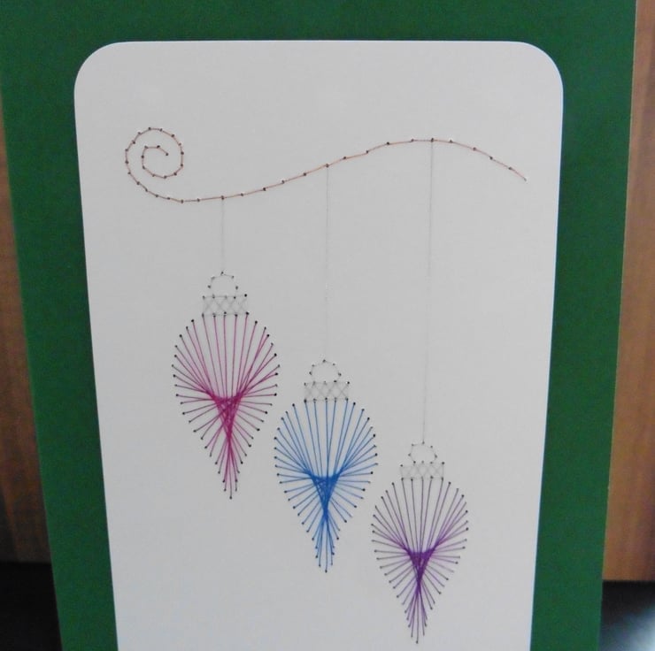 Christmas baubles on a green card (colours of baubles vary) x 3 on a red card x 2