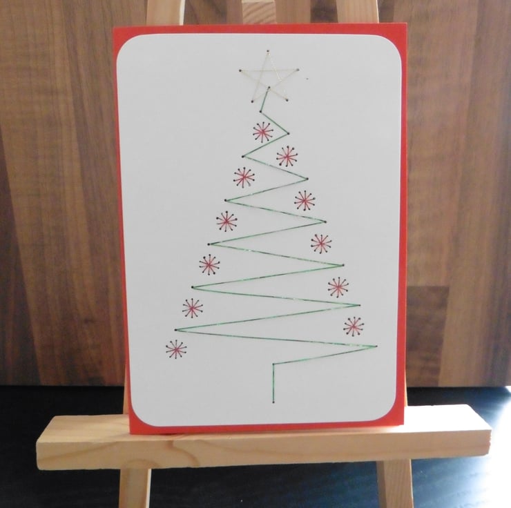 Christmas tree with star and baubles on a red card x4 on a cream card x 1