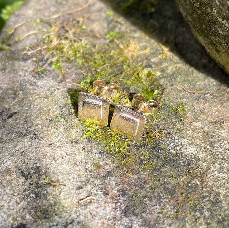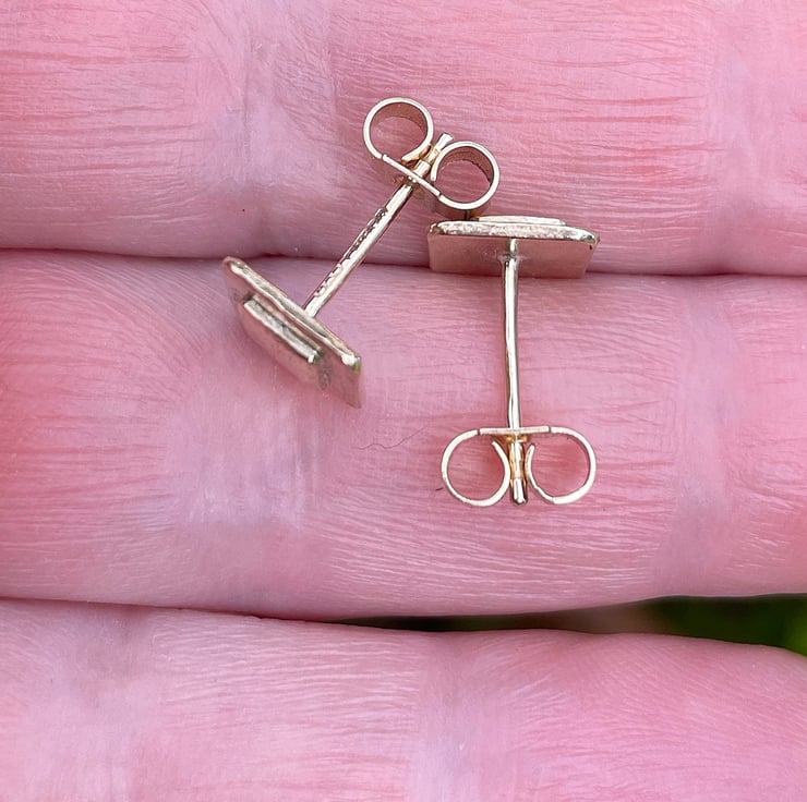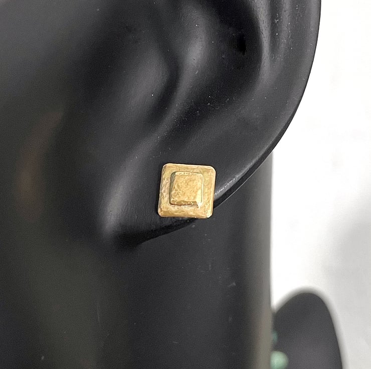 These little studs have two fused square layers of gold, I have given them a beaten, weathered texture.