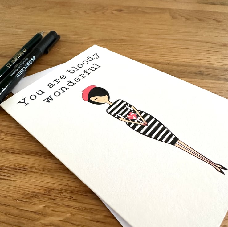 A unique greeting card featuring one of my illustrations. I spent a long time finding the right card that would take really saturated inks and let them sing. I hand sign all of my cards alongside my illustrations and take care that each card that I post to a customer is of the highest quality. I want you to send a card that the recipient will want to keep and cherish.