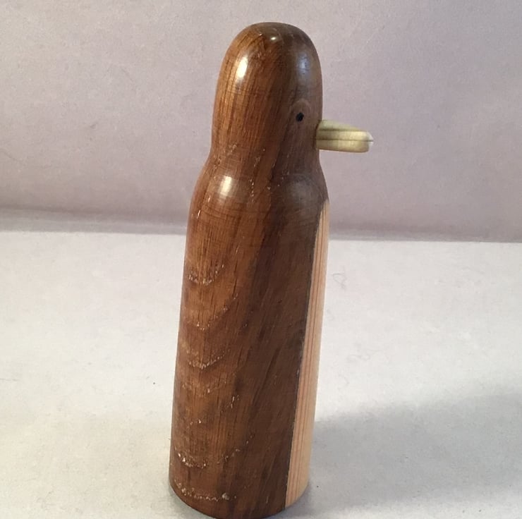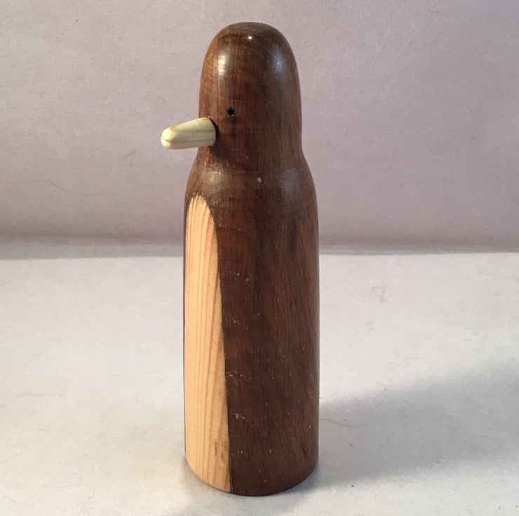 Slim wooden penguin ornament.