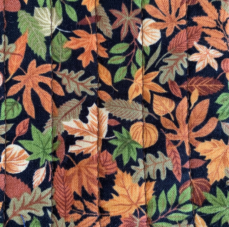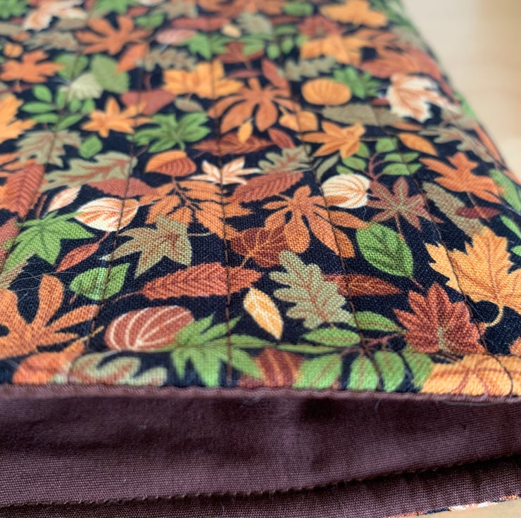 It is made in this lovely leaves and pumpkins cotton print fabric in beautiful autumn tones.