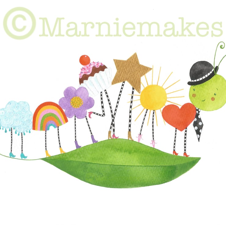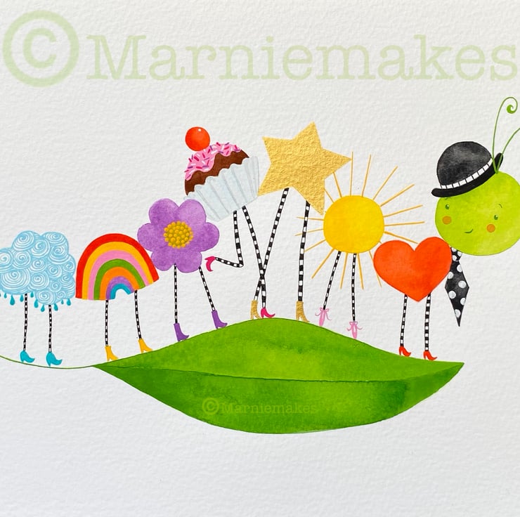 'Just A Little Different '- beautifully colourful, A4, unframed, original illustration, measuring 29.7 x 21 cm , and finished in Holbein acrylic gouache. This darling illo would be perfect in any classroom, craft room, or nursery setting!