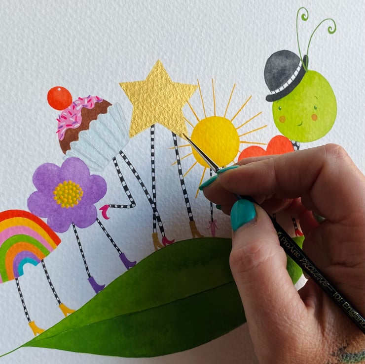 Giclee print taken from my digital illustration of the same name, printed on Fujifilm Fine Art Etch Paper 300gsm and measuring 14.8cm x 21 (A5), this print will be hand embellished in gold , using Holbein acrylic gouache in specific areas on the image (see attached photo) and will come packaged in cellophane with stiff backing board for protection.