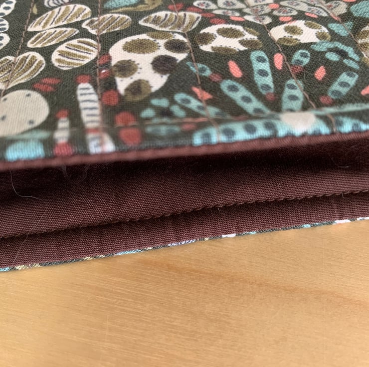 The sleeve is quilted with beige colour stitching and is fully lined with plain chocolate brown cotton.
