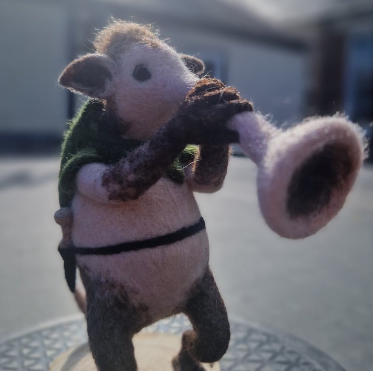 i saw this little lad and knew i had to make him, immediately. Look at him. His face is a doot. His body is an egg. He has little fluffy hair. i don't know what else i need to say about him! i started with the legs, the traditional pipe cleaners, and a vaguely eggy lump of core wool i had knocking around, and he took shape surprisingly fast. Almost as if he was waiting for me. Waiting to play me his doots.