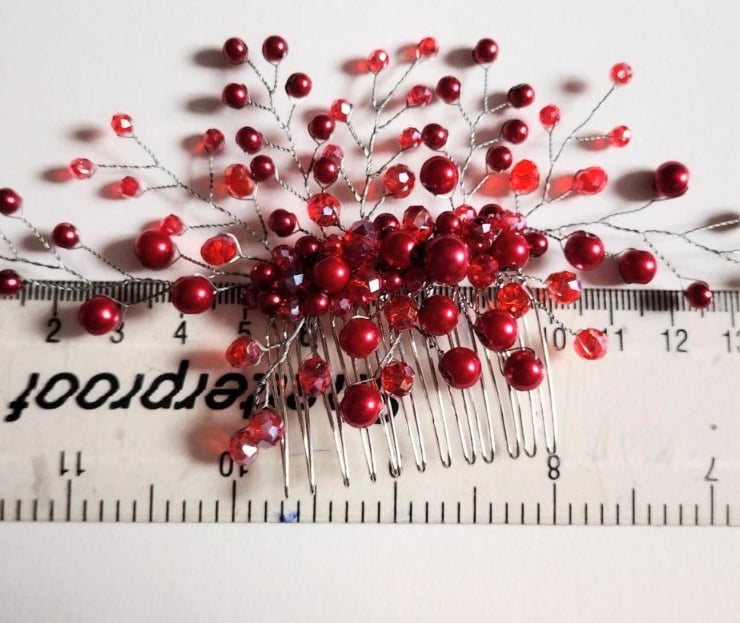 Vibrant red comb, a mix of red crystals and glass pearls make up this statement hair piece.