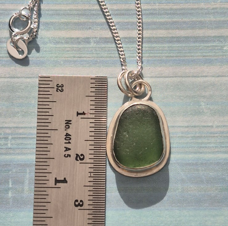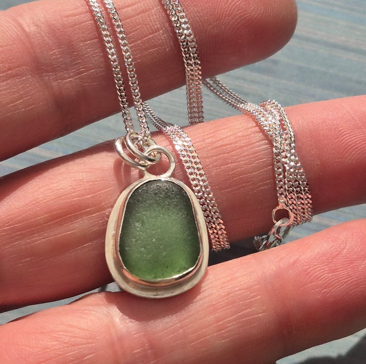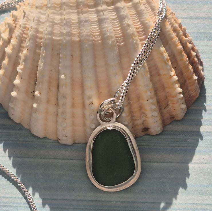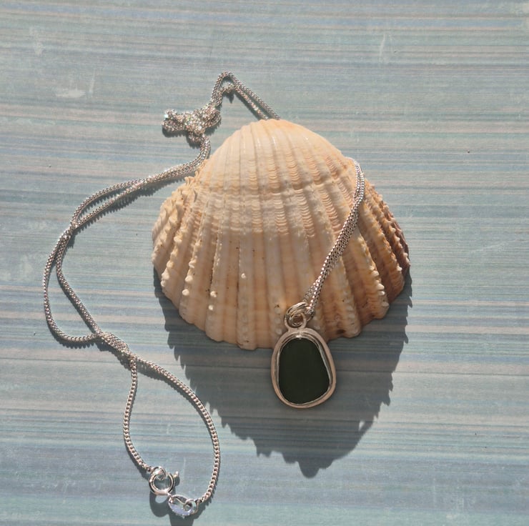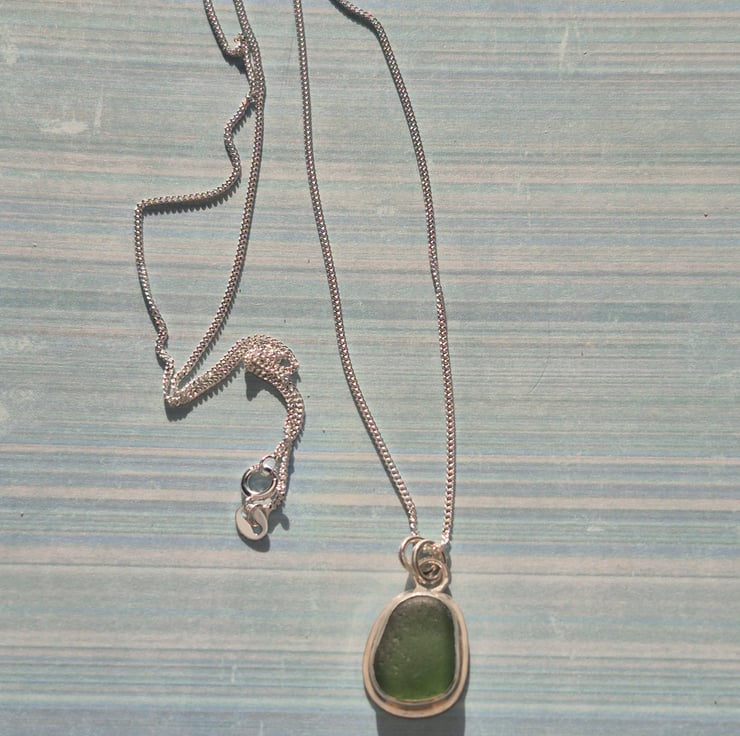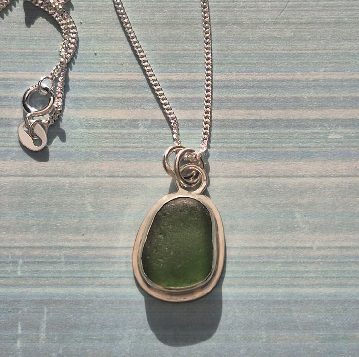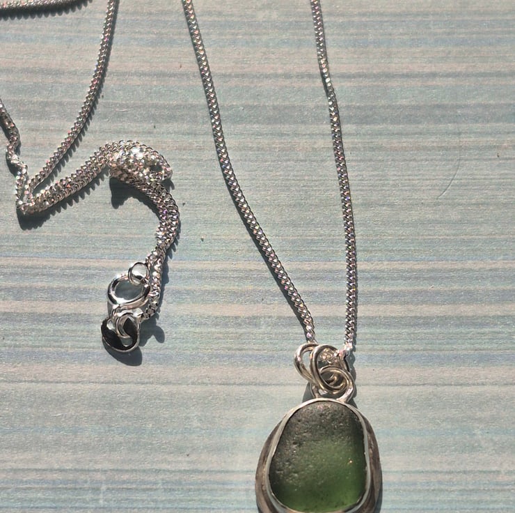Sterling Silver 925 Green Seaham Seaglass Pendant / Necklace