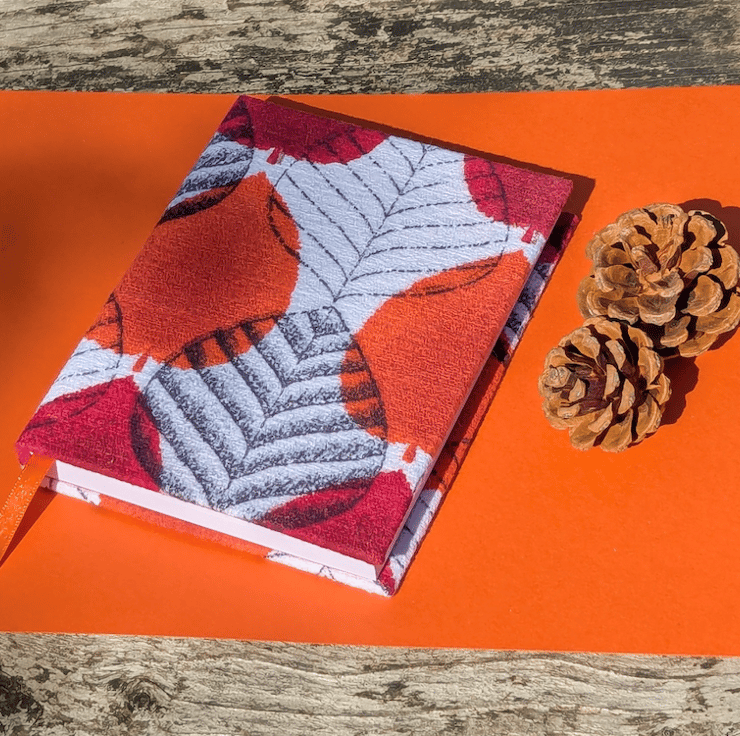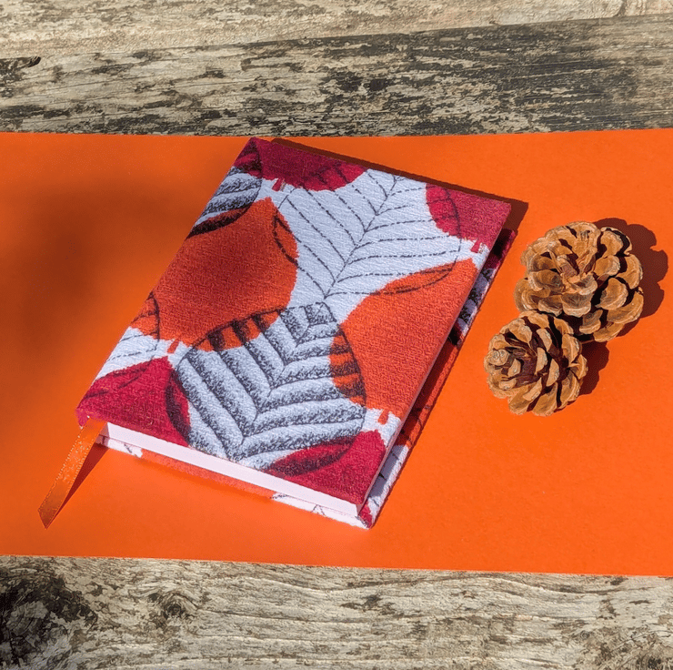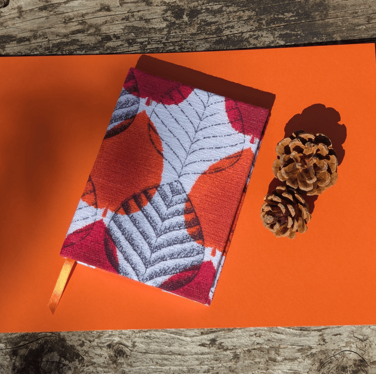 Handmade A6 Journal with 1950's Orange Autumn Leaf Vintage Barkcloth Fabric