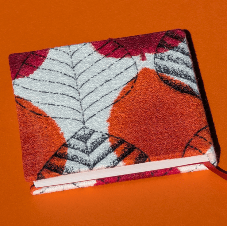 I had been on the look out for some fabric with autumnal colours when I spotted this stunning autumn leaf design barkcloth for sale. I was only able to source a small amount so the books I have made from it are each a one-off. The colours are stunning and it's hard to believe this fabric is from the 1950's as it looks brand new.