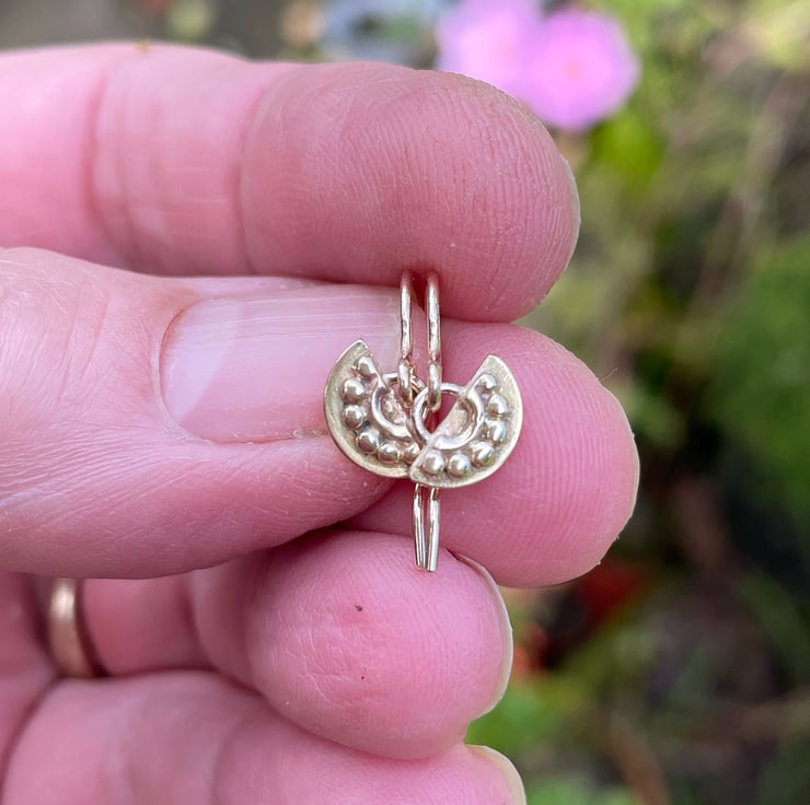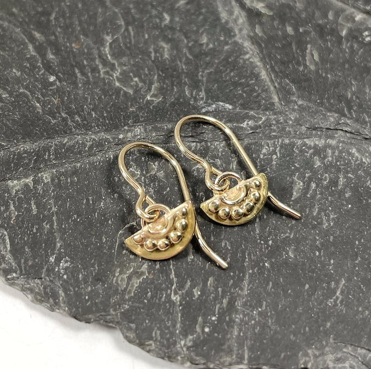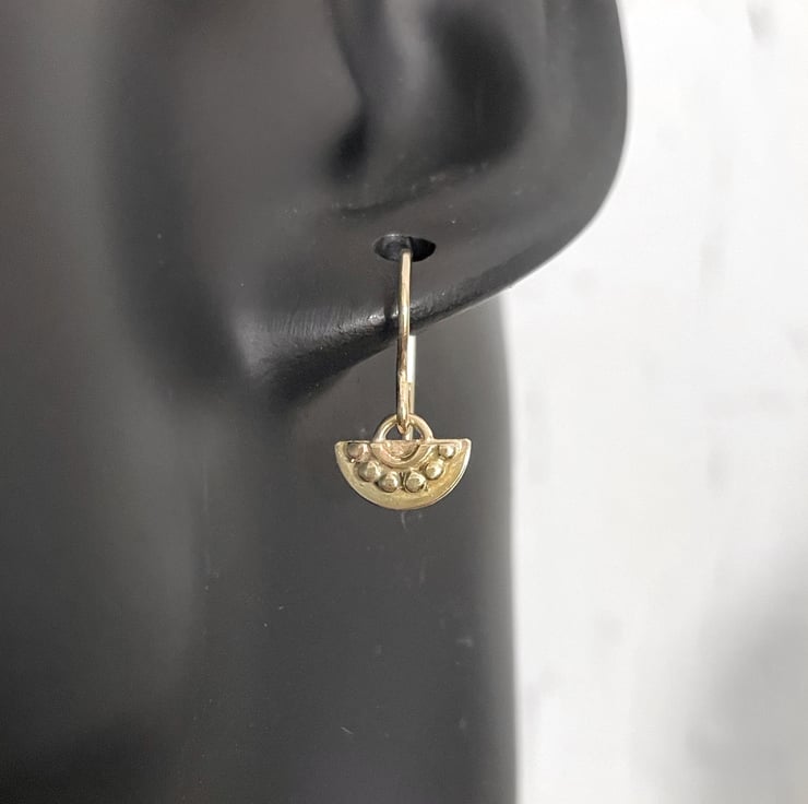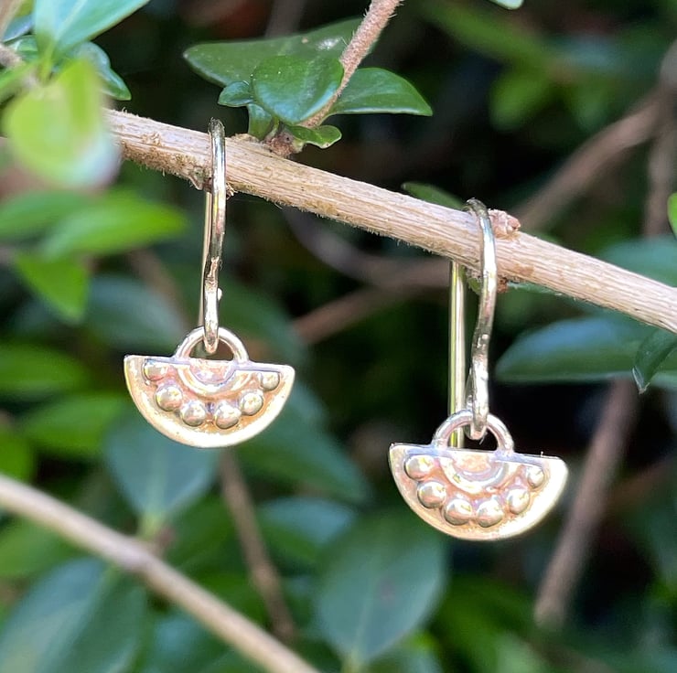 I have made some little semi circular dangles with a raised bead pattern, they hang from handmade hooks.