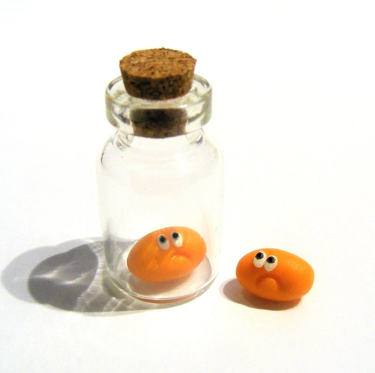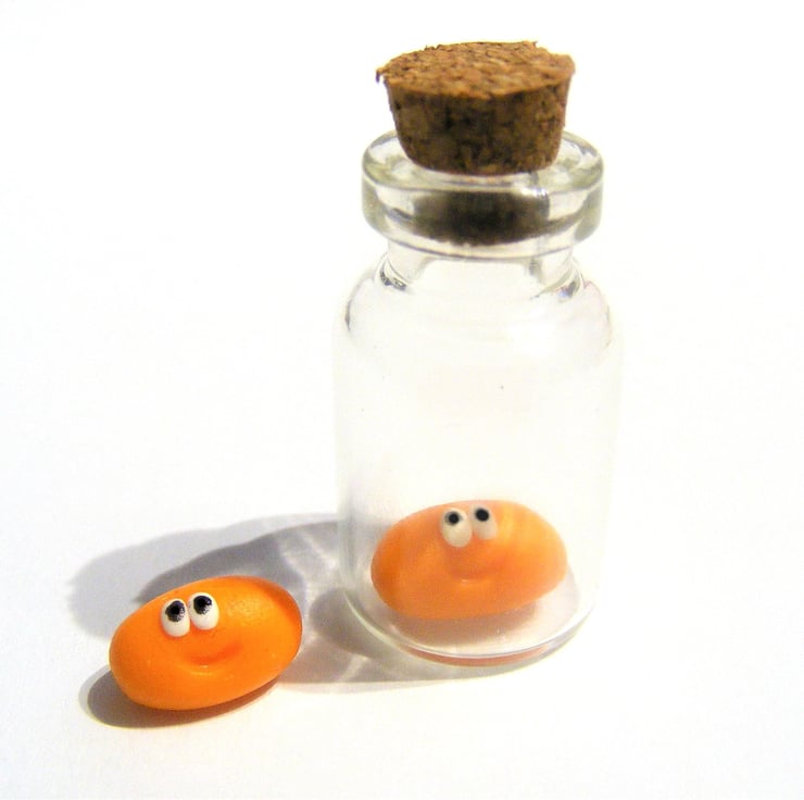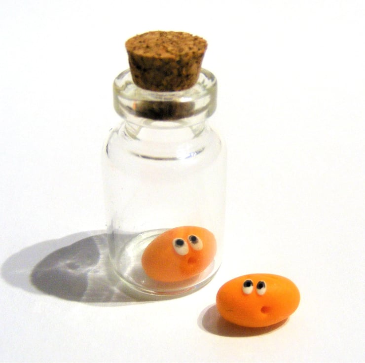 These little beans are the perfect family or best friend gift, perfect for sitting on a desk, dashboard or anywhere else you think they will be happy. He can also be carried around and featured in photos of your greatest adventures as he loves to explore and travel and he is very photogenic! The little bean is placed unglued into the little bottle home. These are available as happy, grumpy or worried beans, just choose which you prefer from the drop down menu. Take one home and i promise they will make you smile!