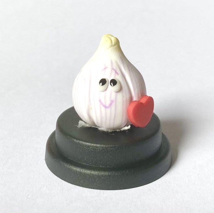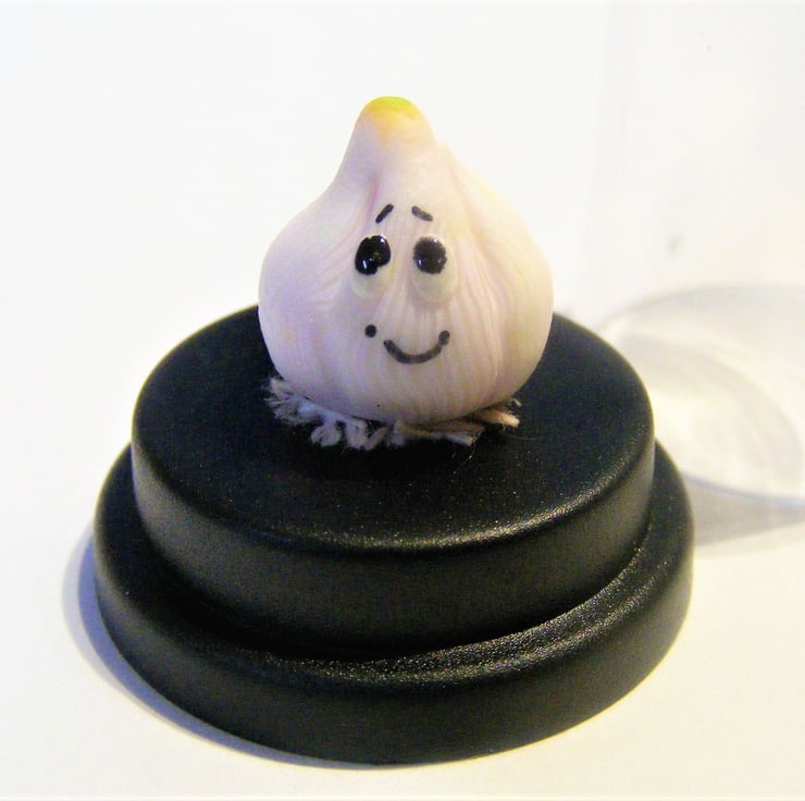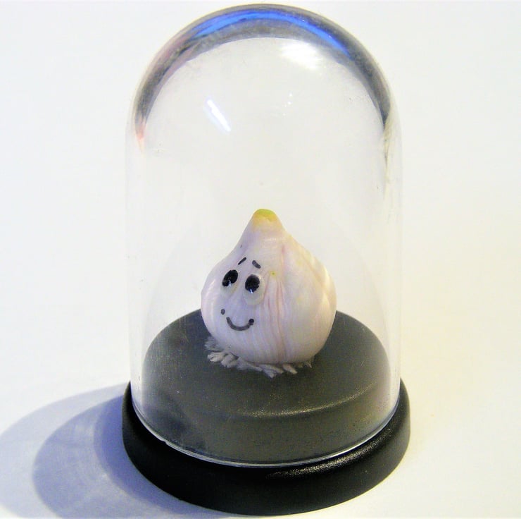 The sweetest, little garlic bulb pet, all ready for his new home. He is the perfect little companion for your desk or anywhere else you think he will be happy. He can also feature in photos of your life adventures as he loves to travel and getting his photo taken!