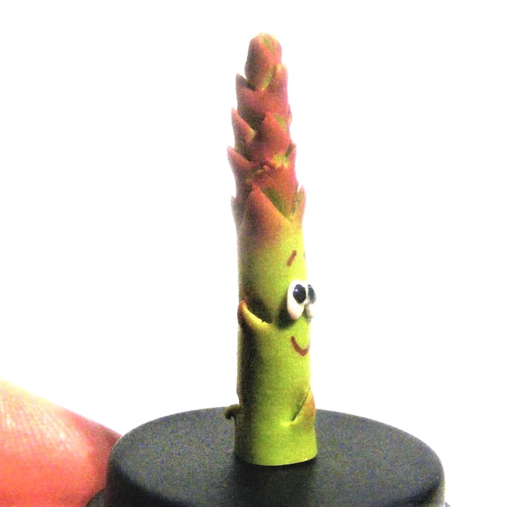 The cutest little pet asparagus spear, all keen and eager to find a new family! He is the perfect little companion for your desk or anywhere else you think he will be happy. He can also feature in photos of your life adventures as he loves to travel and getting his photo taken!