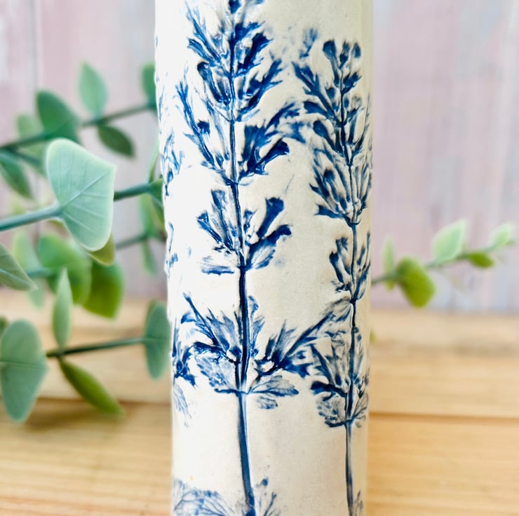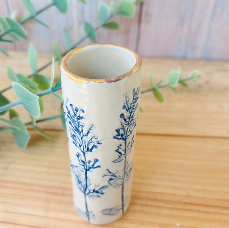 These small stoneware vases are pressed with real plants which leave the most wonderful impressions in the clay.