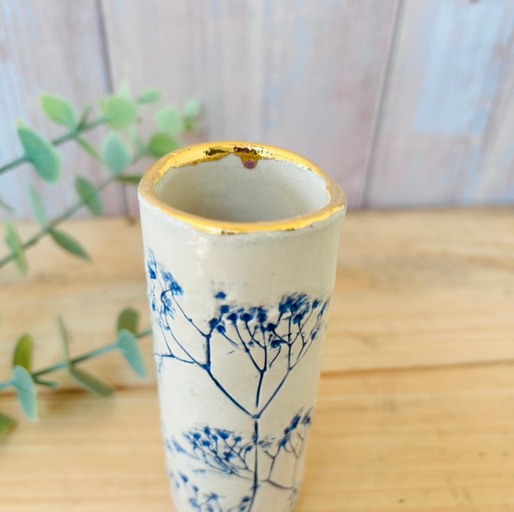 Each vase is finished with a 24k gold lustre rim. Due to the nature of the gold I recommend hand washing only.