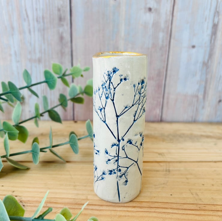 These small stoneware vases are pressed with real plants which leave the most wonderful impressions in the clay.